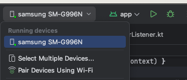 이제 안드로이드 스튜디오에서 코드를 수정하고, 오른쪽의 실행 버튼으로 내 연결한 기기에서 개발 결과물을 즉시 확인 할 수 있습니다.